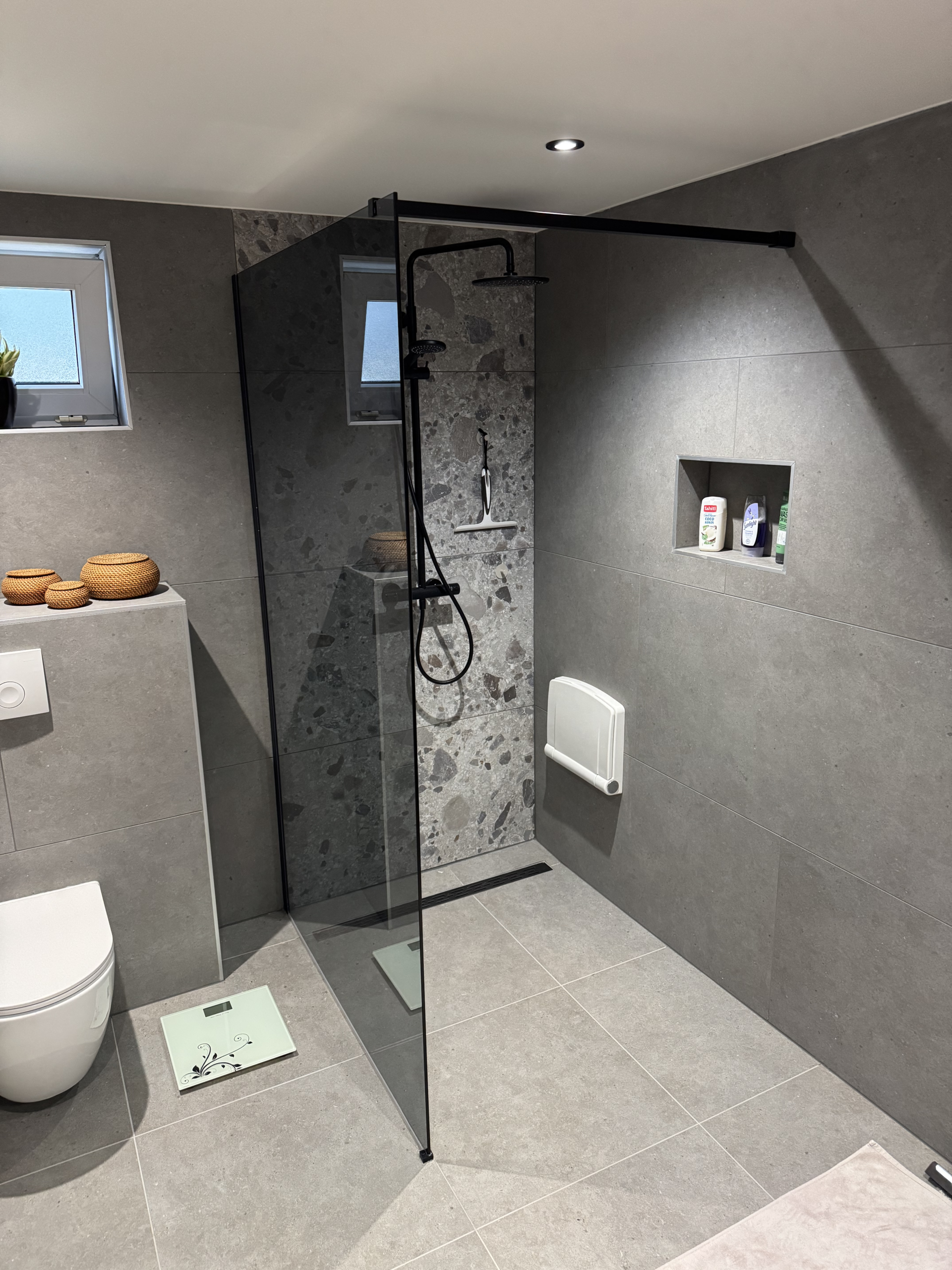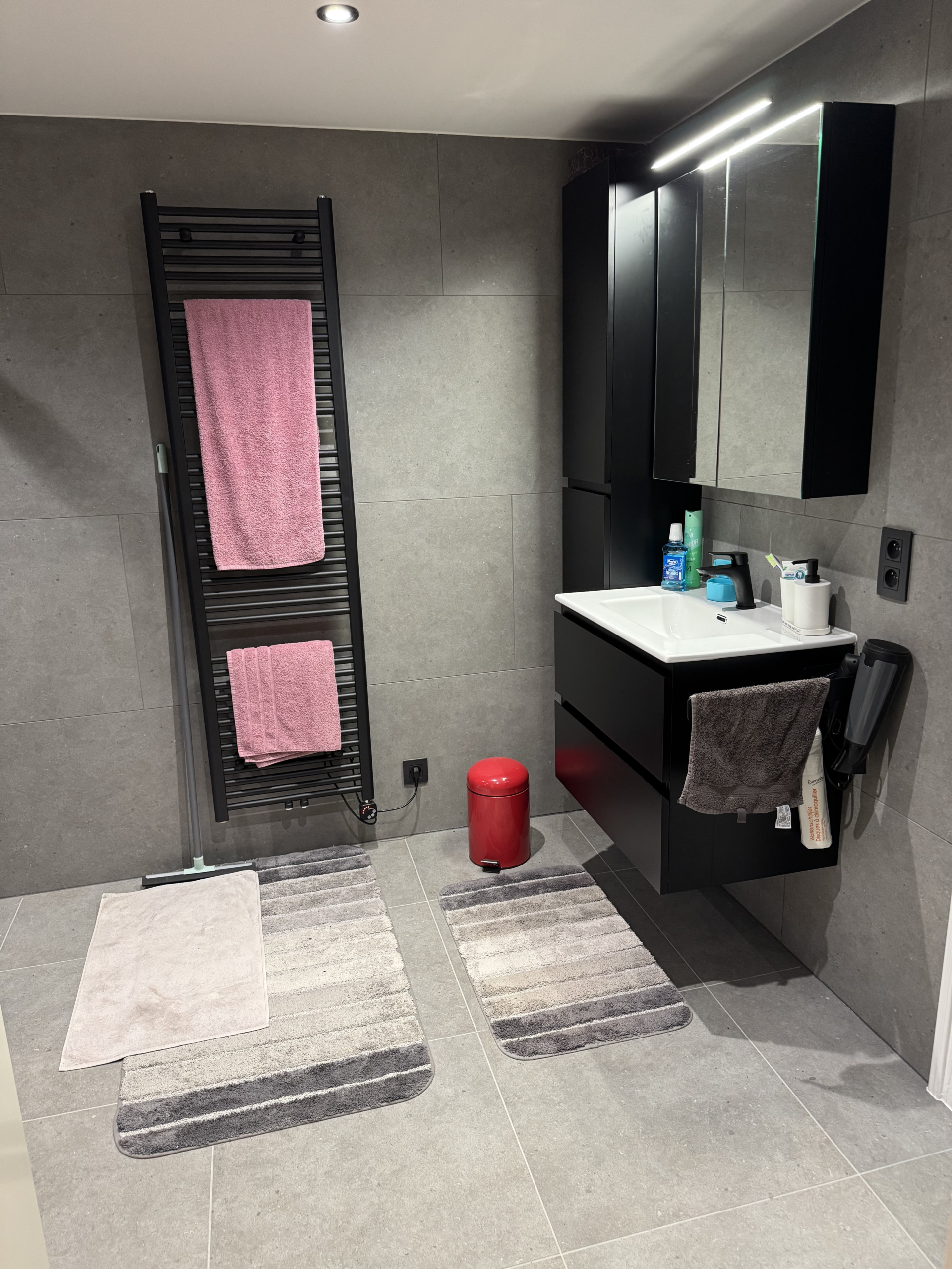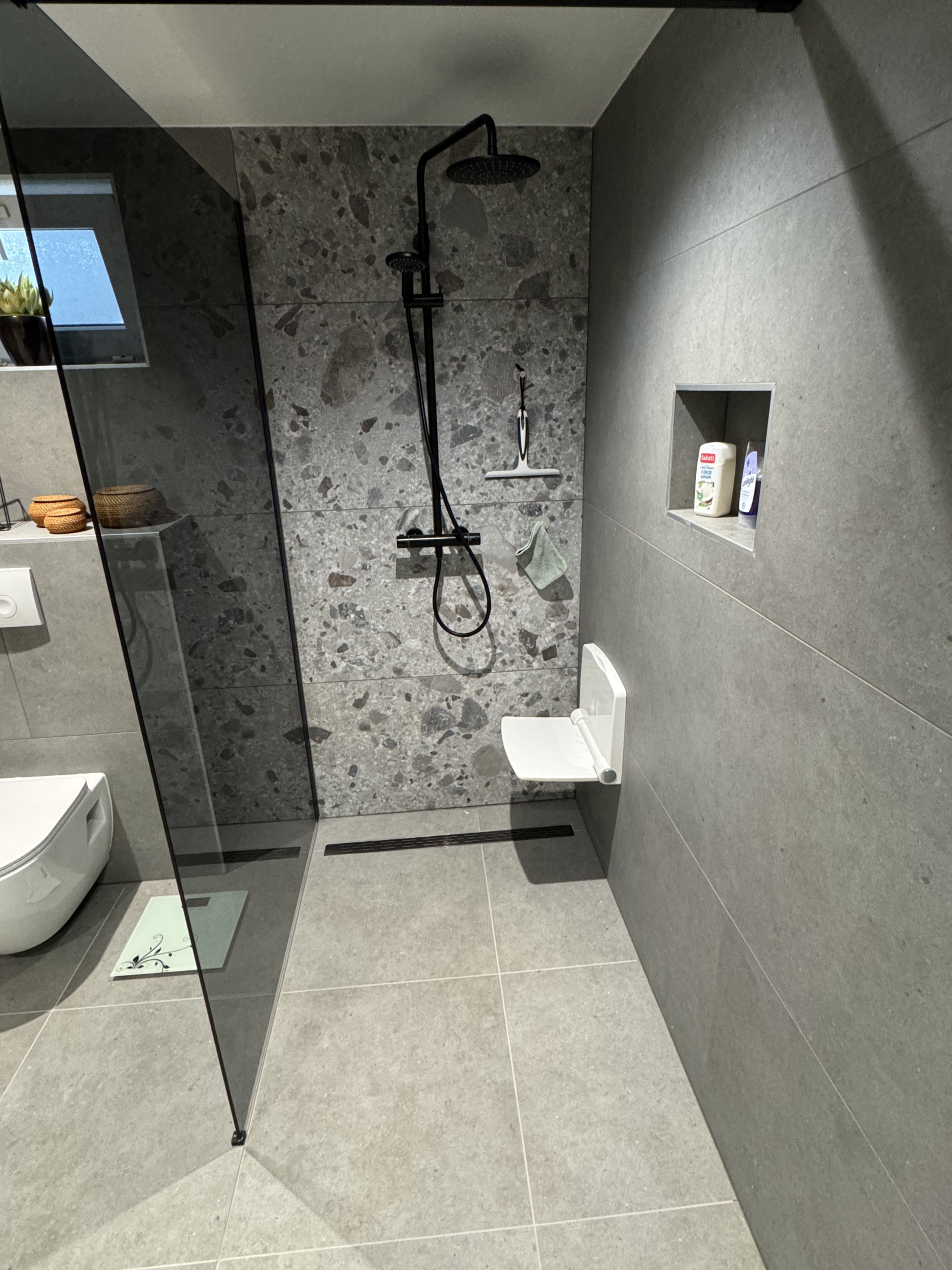 In Kortenaken tilden we een standaard badkamer naar een hoger niveau door de combinatie van Italiaanse designtegels en technisch vakmanschap. Als ervaren vloerder verzorgden we de volledige totaalservice: van de afbraak en de noodzakelijke chapewerken tot de fijnste afwerking met grootformaat keramiek.